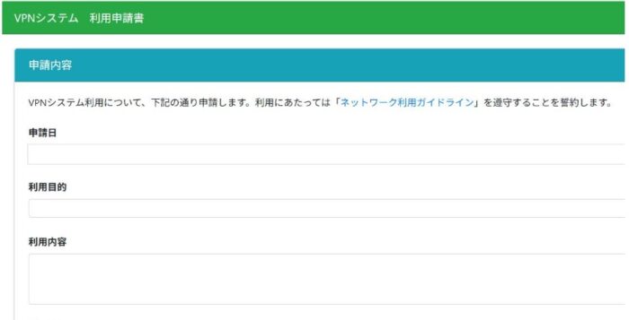 ※VPN利用ガイドラインのリンクを設定しておけば、ガイドラインを読んだ上で申請してもらえるようになります。